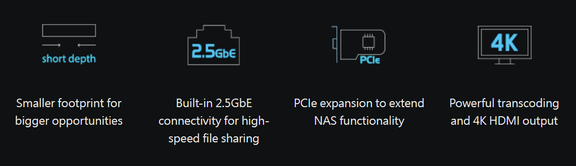 | CPU | ● Intel® Celeron® N5105/N5095 4-core/4-thread processor, burst up to 2.9 GHz ● Architecture: 64-bit x86 ● Graphic Processors: Intel® UHD Graphics ● Floating Point Unit: Yes ● Encryption Engine: AES-NI ● Hardware-accelerated Transcoding: Yes |